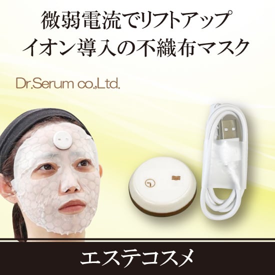 エステサロンで使用されているパルス電流の流れる美容機器&シートマスク。電流の流れる不織布マスクは特許製品で、コントローラーは医療機器メーカーとの共同開発です。